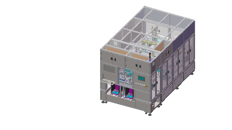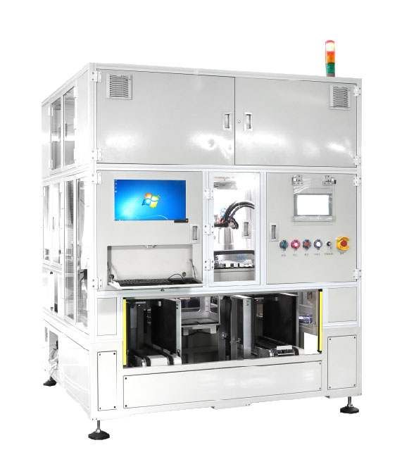 一種測(cè)試電池IV、開(kāi)路電壓、內(nèi)阻、溫度、條碼掃描、極耳整形功能及電池自動(dòng)輸出的全自動(dòng)化測(cè)試設(shè)備,采用四軸機(jī)器人+CCD定位技術(shù)+伺服+電池測(cè)試儀等方式,實(shí)現(xiàn)換型時(shí)間短、維護(hù)方便、操作簡(jiǎn)單。