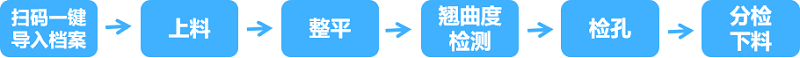 上板機(jī)+水平板翹反直機(jī)+板彎板翹檢查機(jī)+在線檢孔機(jī)+并聯(lián)機(jī)器人