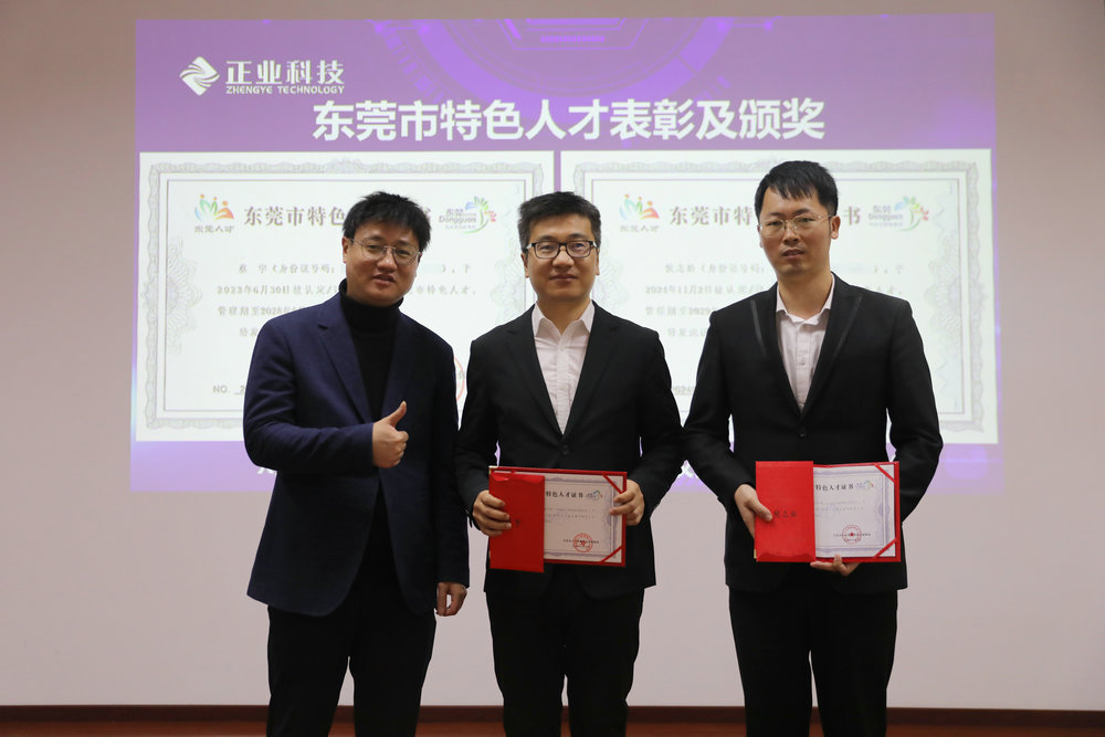 本次會議對2024年度技術(shù)研發(fā)、項目管理等方面表現(xiàn)優(yōu)異的項目團隊及獲得東莞市特色人才的優(yōu)秀個人表彰。