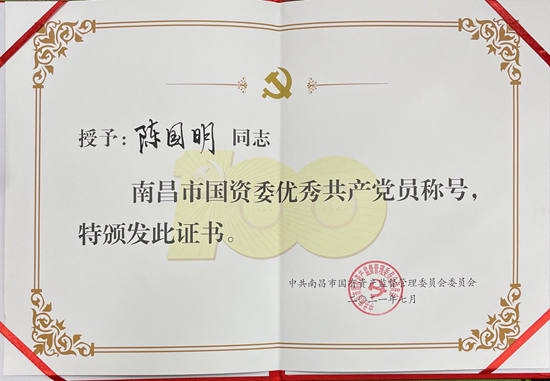 在隆重紀(jì)念中國(guó)共產(chǎn)黨成立100周年之際,南昌市國(guó)資委和南昌旅游集團(tuán)于近日對(duì)一批來自各條工作戰(zhàn)線上的優(yōu)秀黨員和優(yōu)秀黨務(wù)工作者及先進(jìn)基層黨組織進(jìn)行了表彰,獎(jiǎng)勵(lì)他(她)們?cè)诟髯缘墓ぷ鲘徫簧?/font>履職盡責(zé)創(chuàng)先進(jìn)、立足崗位爭(zhēng)優(yōu)秀,在推動(dòng)企業(yè)高質(zhì)量發(fā)展中充分發(fā)揮戰(zhàn)斗堡壘和先鋒模范作用。其中,公司陳國(guó)明同志榮獲市國(guó)資委“優(yōu)秀共產(chǎn)黨員”稱號(hào),公司黨委被評(píng)為南旅集團(tuán)“先進(jìn)基層黨組織”,黨員職工胡穎明、徐小蘭、王昕、王貞同志獲南旅集團(tuán)“優(yōu)秀共產(chǎn)黨員”稱號(hào)。